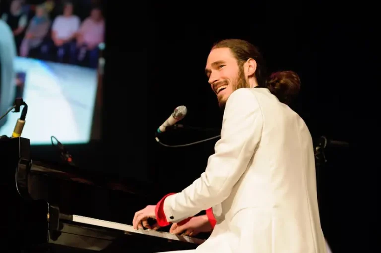 Think: Jerry Lee Lewis on fire, mixed with inspiring storytelling and pure emotional connection.